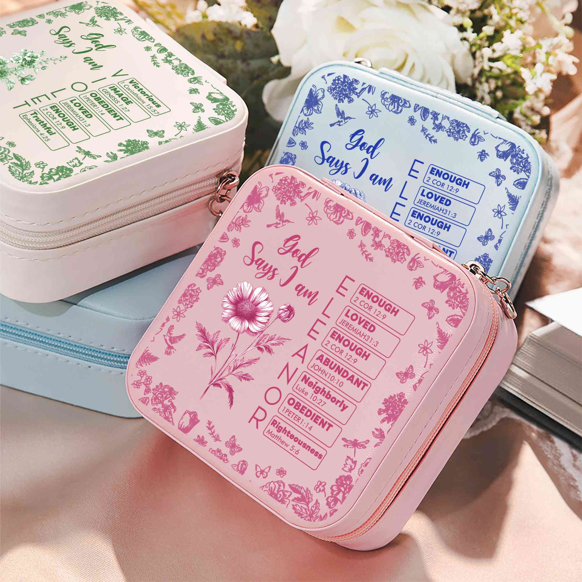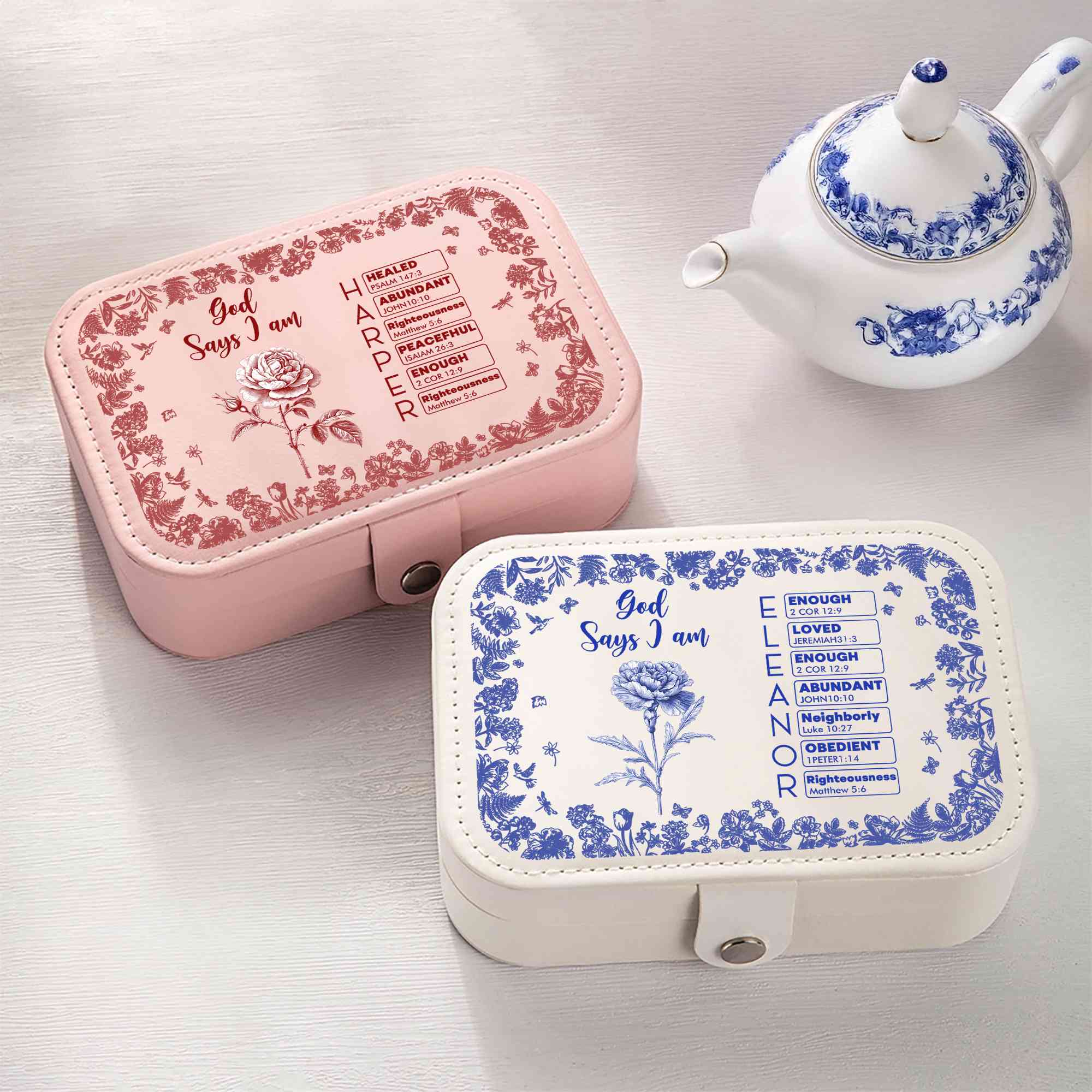 Style Custom Name Birth Flower Toile De Jouy Bible Verses Jewelry Box